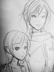 並べて描くと、いっつもMEIKOが上を向いてて、KAITOが下を向くなあ、と思ったので、逆転させてみた。